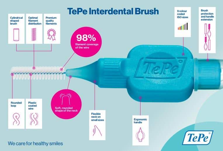 ✔️ Bàn chải kẽ siêu mềm Tepe giúp làm sạch vùng kẽ răng.