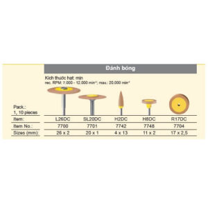 – Kích thước hạt: mịn, dùng để đánh bóng. Recommend RPM 7.000 – 12.000/ min, max 20.000/ min
